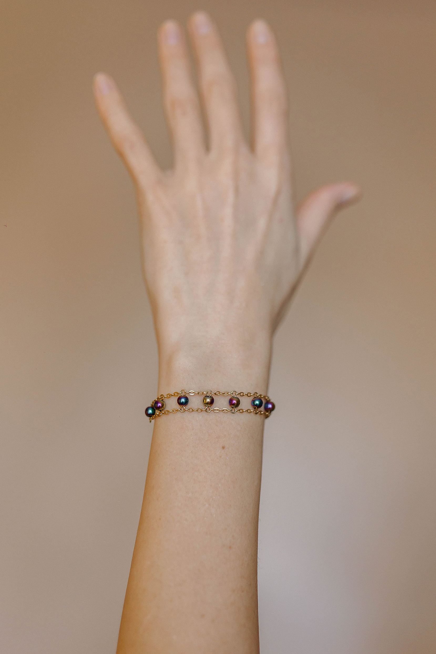 ilość Bransoletka Roxy z tęczowymi hematytami holo złota